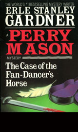 [3-4/1-7 Title credits](1-1) [2-7](1-2) At night at the Callender Ranch, a man rides up on a horse, climbs into the ranch house through a window, goes to the safe behind mounted longhorn horns. Ssomeone in an adjacent room hears him. He escapes on horseback. The horse is shot at by a watchman. / (1-3) Perry Mason and Della Street out driving in a Ford Fairlane convertible. A white Lincoln passes them, forces an old post-war Mercury off the road and into a roll-over. Mason helps a Mexican woman out of the car, and into a car of a passerby who speaks Spanish. Mason then finds an ostrich-feather fan, initialed L F, and high heeled slippers, in the trunk of the car. Somebodys wardrobe notes Della. Somebodys complete wardrobe is Perrys correction. // [3-7](1-4) A man in a ten-gallon hat, John Callender, shows "fan-dancer's" ad to Gertie, asks to see Mason. Callender explains he paid for the ad to run another week, got a receipt with Mason's address on it, which is how he knew who was behind the box number in the ad. He has a perfumed letter from Lois Fenton, stage-named Cherie Chi-Chi, authorizing Callender to reclaim a palomino quarter-horse. When Mason rejects this, saying it does not fit the description of what he found, Callender threatens and tells Mason where he can reach him (room 511, Richmell Hotel), leaves, quickly returns to try mentioning the bullet wound. Mason says his identification doesnt fit. Gertie rushes in with a note from Arthur Sheldon, who is staying in room 510 across from Callender. He, too, she explains somewhat frenetically, wants the horse for the real Lois Fenton. Mason asks Della to look into finding Felton. / (1-5) Della and Perry at a dancer's club. A Fan Dancer dances. Mason gives a note to the waiter,Harry, with a tip. The fan dancer joins them, learns that it is not the horse, but her fan and slippers he's found. She thanks Mason with a kiss. He is silent. You havent said a word since she kissed you notes Della. Didnt I say goodnight? / Mason visits Sheldon, who hides Lois Fenton, the fan dancer, in his bedroom. Mason sees lipstick-stained napkin in the waste basket. Sheldon asks Mason to represent Lois, whose husband, John Callender, is threatening her with blackmail, namely forged checks by her brother Jasper Fenton. Someone rode a horse into the ranch and tried to steal the checks. Wounded horse would give him another lever against Lois. Mason tries to enter the bedroom, is cut off by Sheldon, who is told to check out of the hotel now and produce the real Lois Fenton at his office the next morning. / Mason wakes Drake with a phone call, tells him to put a shadow on Callender and Sheldon, and find a horse, a seven-year-old Palomino quarter horse. / Drake notes Sheldon did not check out immediately, but an hour later. Mason and Drake go to 511. Drake says people were visiting Callender all night long into the early morning. // [4-7](1-6) Mason enters Callender's room, finds him dead, with a Japanese sword in his back. / Mason considers the situation, then crosses from 511 to room 510 where Drake is with two operatives. They are boxed in as room service tries to get a response from 511. Perry has Paul inform the police of the murder (Police headquarters is Madison 5-1190). One operative, Faulkner, reports that he was there by 2:20. Sheldon ran out of 511 and into 510. A dish carrying a violin case went into 511, came out ten minutes later at 2:32, with a violin case. Then a "character" in an overcoat (it is mid-summer), buttoned up all the way, comes to the room, enters, exits ten seconds later. Sounds in hall. With periscope, Paul notes police have arrived. He joins Lieutenant Tragg and Sergeant Holcomb, is dressed down by former who then crosses hall looking for Mason, who has left. // (1-7) Mason goes to Sheldon who says he sent Lois downstairs to wait, but she was gone, so he went back and waited for her. He is surprised that Callender has been murdered. Its not a policy of mine, Mr Sheldon, to encourage a criminal to disappear. Mason leaves as Sheldon packs. / Mason speaks to a landlady who says Sheldon rented at three the previous afternoon. A party put the required $3.00 under the counter and took a key without registering. In room #5, Mason finds blood on the floor and the sink and fan feathers while the landlady finds long dark-brown hairs./ On his way out, Mason sees a man watching him. / At a lunch counter, knowing he is trailed by Tragg's men, Mason gets news from Street after ordering his usual from waitress Helen. Paul has found the horse and is bringing him in. Both Faulkner and house dick, Meeker, identified woman at 511 at 2:23 as Lois Fenton. Tragg thinks Mason is hiding her. He tells Della to send Lois to a record shop if she checks in. Mason tells Della that he is going to lead Tragg to one of two Lois Fentons. / Mason finds a Lois Fenton, exercising. She puts on a coy, kittenish personality. She was at 511 just before two; maid saw her leave, she says. She did not go back at 2:23, and Harry will swear to that. She (Cherie Chi-Chi) is also a Lois Fenton, for she took over Fenton's act when Fenton married Callender. She copied Lois, her walk, her style, her clothes. She admits that Callender offered her a lot of money to write the letter Mason got. / Mason meets the real Lois Fenton in the record shop, puts on record of Strauss waltzes. Fenton admits that she was in Sheldon's room when Mason was there. When he left, she went across to see her husband, and threatened him if he made trouble for her brother. He laughed at her, she ran down stairs. She did not return at 2:23. Regarding the horse, Starlight, he was stolen while she was working.Lois signed a contract giving Cherie rights to use the stage name. Mason suggests that she stay at a motel near the horse. // [5-7](1-8) Mason and Fenton give the horse to the stable man. Mason asks about Fenton's seeing Sheldon at a rooming house he went to, though he'd actually registered there before M