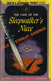 [2-4/1-8 Title credits](2-1) [2-8](2-2) Night at a ranch. Inside, a pajama-clothed person bare-footed walks to a desk, picks up a curved-tip letter opener or perhaps a carving knife. He goes into an adjacent room, where a woman in bed awakes, panics and screams. It is Doris (Cole) screaming, Peter (Cole) with the letter opener. Edna (Hammar) arrives and turns on the light, then wakens Peter. Doris shouts, You wont be satisfied until Im dead. // [3-8](2-3) In Santa Barbara, Doris is carrying a bowl of roses when the doorbell rings. It is Frank Maddox, her husband's partner, coming to her house. She gets her final decree of divorce in 24 hours. Maddox lights two cigarettes, gives her one. Youre such a louse, she teases. He thinks she can get $100,000 by sitting tight. They kiss passionately. / Peter is with Lucille Mays, whom he intends to marry, having made her wait 15 years, notes Edna (Hammar). Frank arrives with attorney Ralph Duncan, introduces Cole's associates Edna Hammar, Peters niece and secretary, and Phillip Kendall, Peters stepbrother. Frank compliments Lucille, asks her to leave; she does, but Edna stays. Maddox announces that he wants to sell out. For $500,000, says Duncan, which is almost what the company is worth. There will be no divorce unless this is acceptable, says Duncan. Cole calls it blackmail, and Edna stalks out. Steve (Harris), her boyfriend, enters, and she asks him whom hed consult if he got into trouble. / Peter Cole and Edna meet with Perry Mason, who suggests that he and stepbrother meet with Maddox and Duncan and stall them until he gets there. They leave. Della! I know, she responds to her boss, a new file, Cole vs Cole. Jackson is sent to Santa Barbara to get the divorce info. / Mason calls half a million extortion to Maddox and Duncan. Maddox thinks it reasonable, considering what Cole is getting and has wanted for so long. Ill kill you, responds Cole. Mason gets a phone call from Jackson about the time of the interlocutory becoming final. Mason gets Jackson to ask questions so he can give him direction without letting others in the room know. He suggests to Maddox and Duncan that they stay the night at the ranch with Cole. Masons answer will be given at 9 am (the decree can be finalized by Jackson by 11). Cole is unhappy at having to offer such hospitality, but Mason counters that this keeps an eye on Maddox. Mason will have Jackson get the decree (since Mrs Cole has not moved to stop it) while Peter and Lucille fly to Nevada to marry without California's three-day wait. Steve volunteers to take the papers to Jackson and to keep notes on the comings and goings at Doris's, as instructed by Mason. / Lucille suggests to Edna that she wait with her for her phone call, but she goes into the hall, where she meets Maddox. Hes switched rooms with her uncle Phillp. / At 11:10 a phone rings at Doris's. It is from Maddox, at a phone booth out on the highway. He says he'll call her regarding the divorce at 9:30 in the morning. / At the ranch, a drawer is opened and a carving knife is removed. // [4-8](2-4) Mason is surprised when he is greeted at Cole's by Lieutenant Tragg. Phillip Kendall is dead in bed, and the murder weapon is the carving knife. / Duncan tries to help Maddox leave to make his phone call, but a policeman wont let him go. / Edna Hammar is examined by Lt Tragg. She explains where the knife was kept and says that Maddox and Kendall had switched rooms. Edna admits that Peter is a sleepwalker. Where is Uncle Peter? demands Tragg, suggesting his absence is flight, and Mason is biased, for he will have to defend Cole for murder. / Paul Drake commiserates with Della Street who is at Gerties desk in the outer office. She wonders how he can eat so much food . . . when hes on an expense account. Then he tries to cheer Mason in the inner office. Nothing seems to be working right for me today, says Mason, as his lighter refuses to light. He reports that eight years earlier Maddox, involved in a scandal, got five to ten from the jury, but never served a day. His lawyer, Duncan, got him off. Jackson phones Mason that the decree is finalized. Steve, who is with Jackson, reports that at 3 am Duncan telephoned Doris. Thats the time of the murder, Drake notes. / A car races down a curving road. / Steve reports on the specifics of the phone call. Mason worries about Cole, orders Drake to locate Cole with Lucille May in Nevada. He asks Della to charter a plane and wonders, Do you ever ask a sleepwalker to tell you the truth? / Mason flies out of Los Angeles to McCarran Field, a Las Vegas airport. Cole, with Lucille, is told by Drakes detective that he is to wait for Mason. They have not yet married. Lucille suggests that she go on to the hotel, and leaves. Mason joins Cole who says they arrived 45 minutes earlier, staying longer in L A because Lucille wanted to do some shopping. Mason briefs Cole, asks him the question to which his answer may be the most important of his life, did he kill Philip? Cole admits that he sleep walks, so doesn't know if he killed Kendall. Lt Tragg and a local Sheriff arrest Cole, and Tragg, a bit gleefully, advises Mason that Maddox saw Cole walking across the patio wide awake. // [5-8](2-5) Della in the outer office greets Perry, rubs his shoulders, informs him that Doris wants to see him. / In her L A apartment, Doris offers to help Mason, then threatens, but Mason calls her bluff; all he wants is 15 minutes with her in open court. He reveals he know of the 3 am phone call and her relationship with Maddox and Duncan. She thinks shes been wiretapped. Mason continues that she wanted to ruin Peter. She accepts $25,000 to settle. There were two calls, Maddox at 11, Duncan at 3. She tells him the specifics of the calls, then, Id hate to tell you what I think of you, Mr Mason. Whenever Im in trouble, Youre going to be my lawyer. // (2-6) Steve goes to Tragg who is effusively friendly, even asking him about an upcoming fight. Tragg corners him,